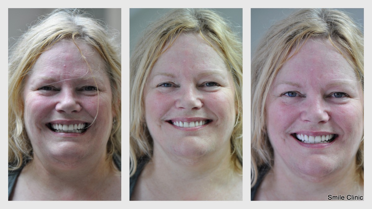 Alison’s sister also had major work done with us, and Alison decided to increase the number of porcelain crowns in her smile from 12 to 20 (12 upper jaw / 8 lower jaw) to create a complete smile makeover.