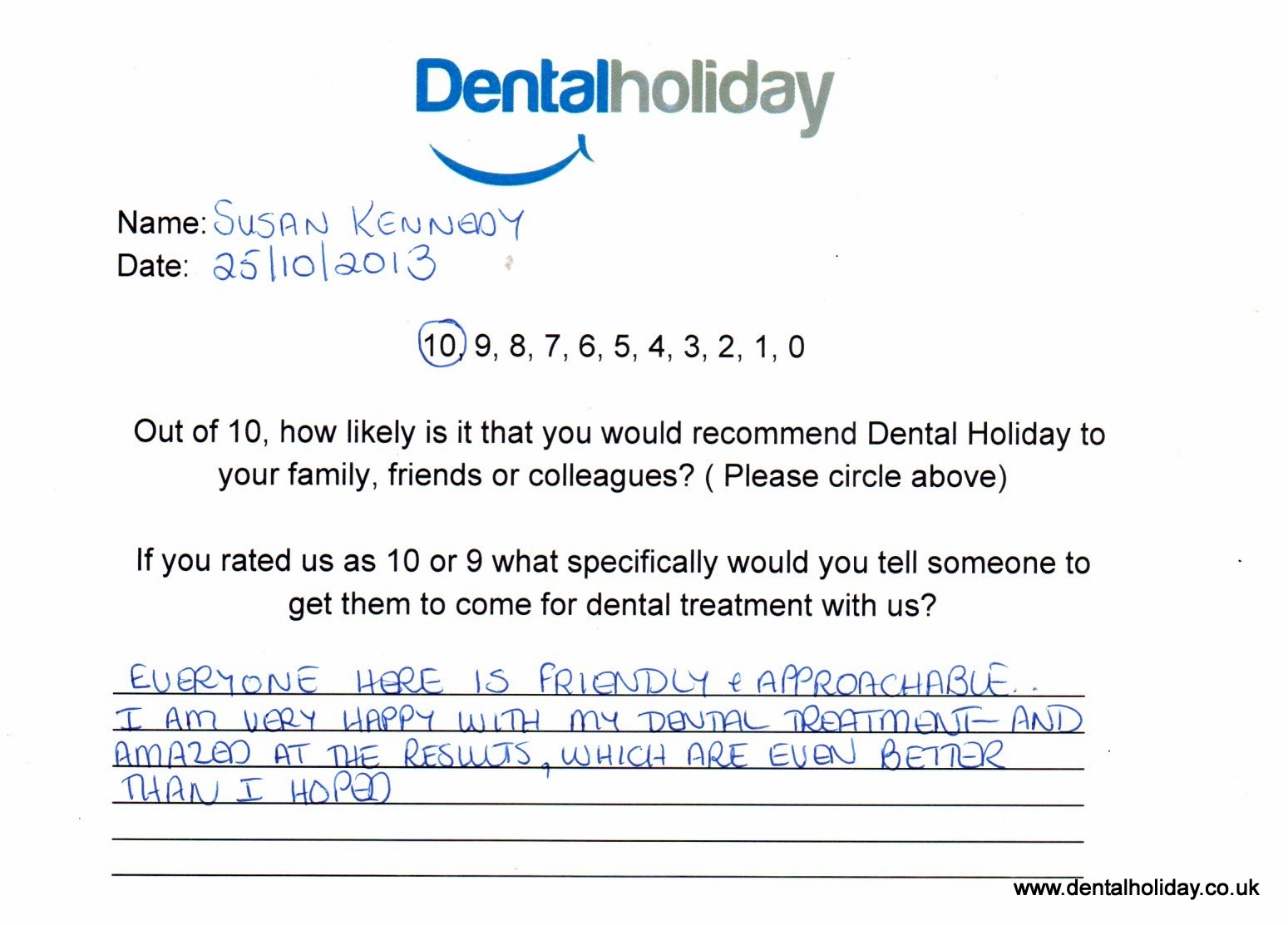Everyone here is so friendly and approachable. I am very happy and amazed at dental treatment results, which are even better than I had hoped.”