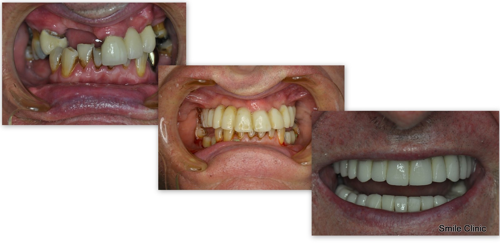 This type of procedure we consider to be a “full jaw reconstruction” as it involves replacing or enhancing all teeth points in the whole upper and lower jaw.