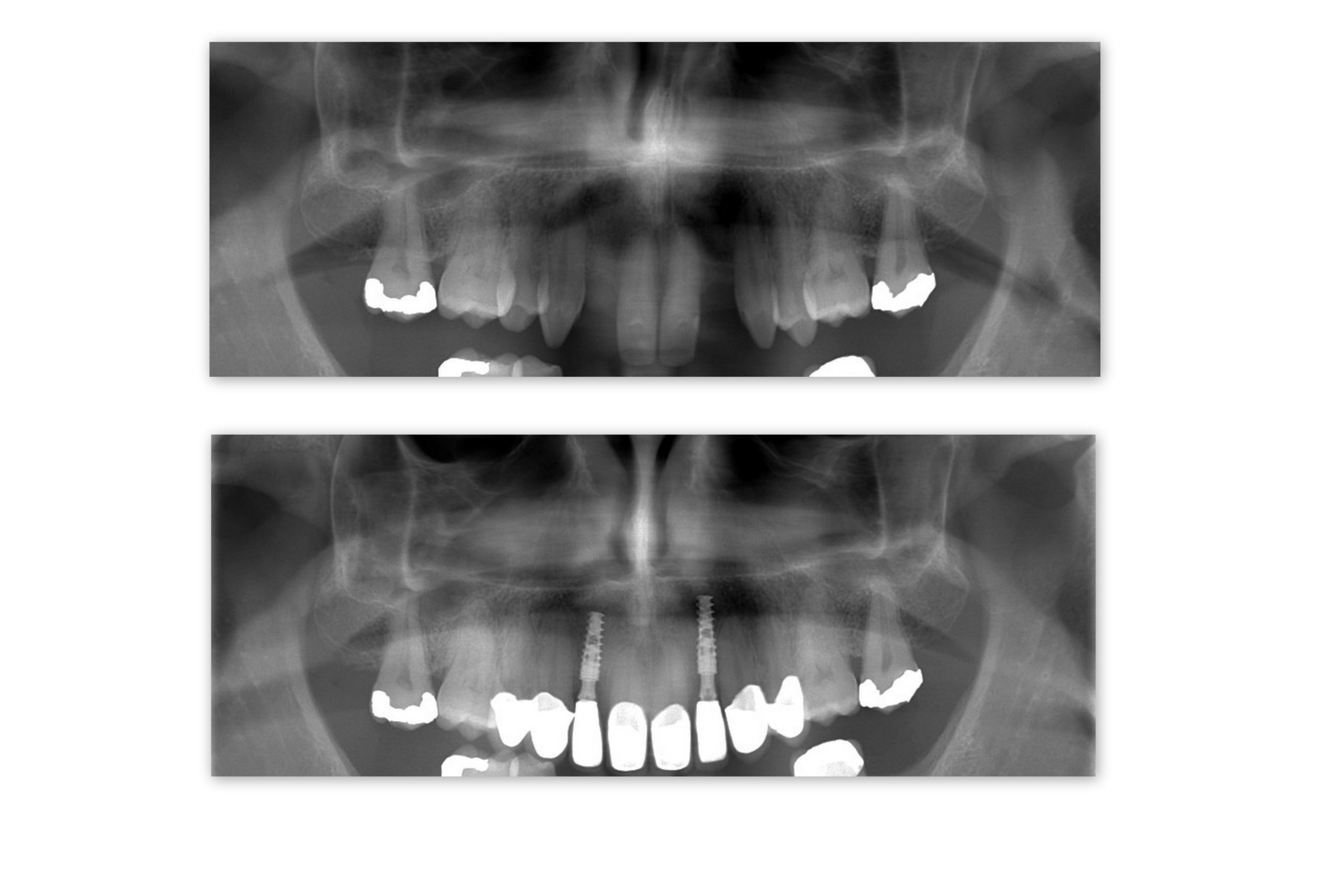 During the free initial consultation (learn more HERE) we made 2 treatment plans for Karl – one for the upper jaw and one for the lower jaw. Karl decided to proceed with his upper jaw – 2 dental implants for UL2 and UR2 (12 and 22) and 6 ceramic crowns for his front teeth.