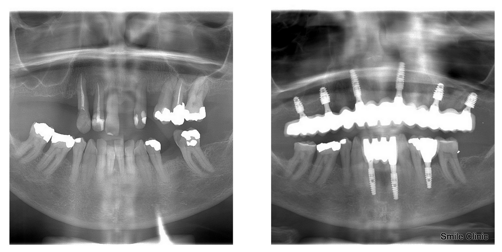 If you have a look at the X-ray here, you’ll see the “before” state of teeth and then after: