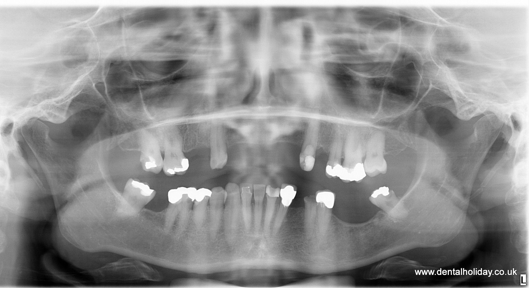 This case study details exactly how Janice’s dental treatment abroad progressed and here are the x-rays before and after for you to see before you read how the treatment progressed.