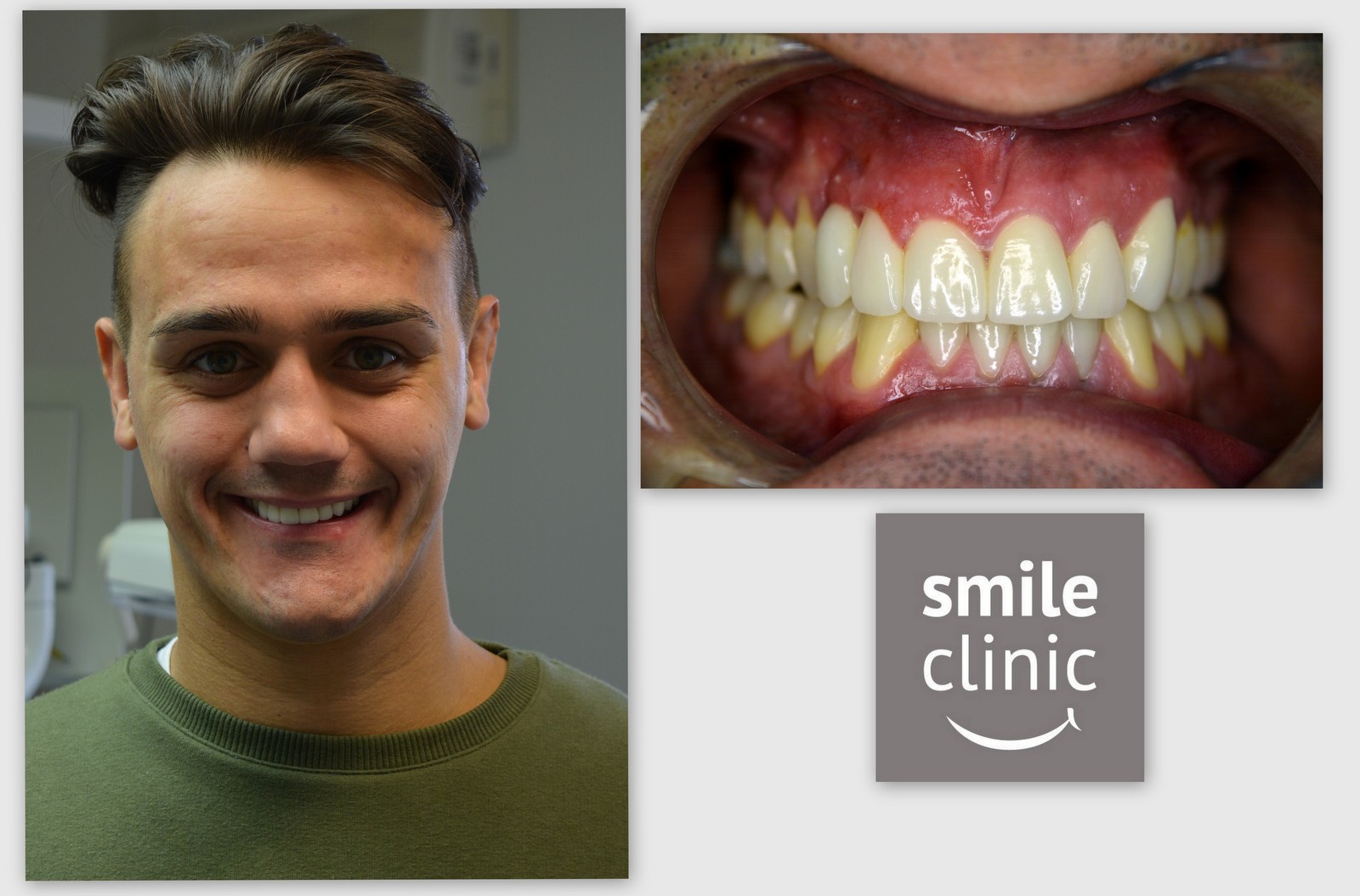 Ben from London had had a brace in for over a year to straighten his teeth before going to have 11 veneers done in a local UK dental clinic, where he found it much too expensive.